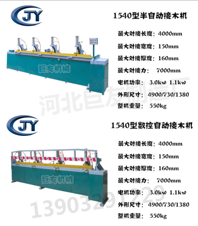 概述:1540型对接机主要用于建筑工地木方对接,把有梳齿机梳完齿的木方放到此机器平台上,经过压紧,挤压把木方的齿部对接完毕拿出就行。其操作简单,维修简便,是建筑工地加工木方的传统机型,
