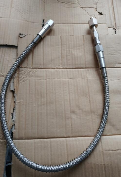 钢丝编织高压软管,内衬不锈钢316L波纹管,爆破压力35.5mpa,符合GB/T5563-2013标准,通常用在气瓶 与减压阀之间器到气体缓冲作用。两端接口为1/4NPT(F),可连接钢瓶接头与减压阀进气端接口,可订做长度:0.5米、1米、2米、3米等长度