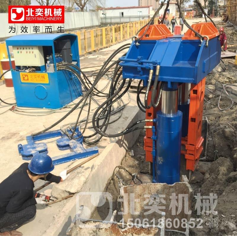 液压缸强制顶压夹桩器,使之向上顶升一段距离,将桩逐段拔出,适用在粘土、砂土或含少量砾石的土层中拔工字钢或型钢桩。工程应用范围:工法型钢拔桩机主要用于市政建设、管道铺设、隧道工程、污水处理、支护施工中,H型钢回收再利用,减少H型钢的一次使用,降低建筑费用。整机能够适应场地狭小、顶部空间不足的场地。北奕机械机械现有厂房5000平方米,目前拥有"工程技术研究中心”及“桩工机械工程中心”公司核心团队由行业资深人员构成,拥有国际先进的研发体系和技术平台,自主研发破桩机,鳄鱼钳,拔桩机等生产线,推行行业领先的管理架构和“精益”理念,拥有强大的研发队伍,具备较强的自主创新能力,不断提升产品品质,打造企业核心竞争力。