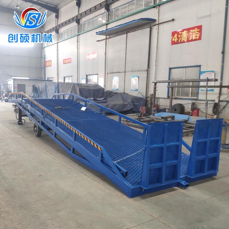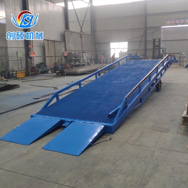 济南创硕升降机械专业制造DCQY移动式液压登车桥采用中德合资技术,按承载能力分为:6T、8T、10T、12T、20T,可分为二段、三段、四段等,在运输过程中分段式运输更加便捷,在不使用的情况下分段式存储比较方便,占地面积比较小,利于存储。它广泛应用于无装卸设备的货台及流动装卸场所,是与叉车配合使用的货物装卸专用辅助设备。适用场所:装卸车频繁、车型不一的大型企业、仓库、工厂、车站、码头、仓储物流基地等。