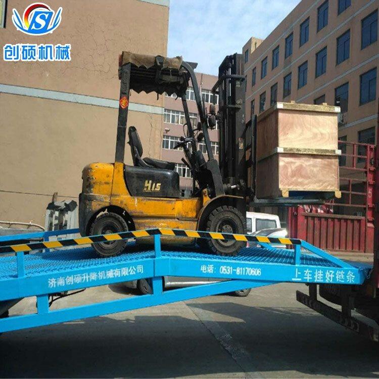 1、移动式登车桥是与叉车配合使用的货物装卸辅助设备,可根据货车车厢的高低调节高度,叉车可以直接通过本设备驶入车厢内部进行货物的联系装卸,仅需单人操作,即可实现货物的快速装卸。它使企业减少了大量的劳动力,提高了工作效率,从而获得更大的经济效益。