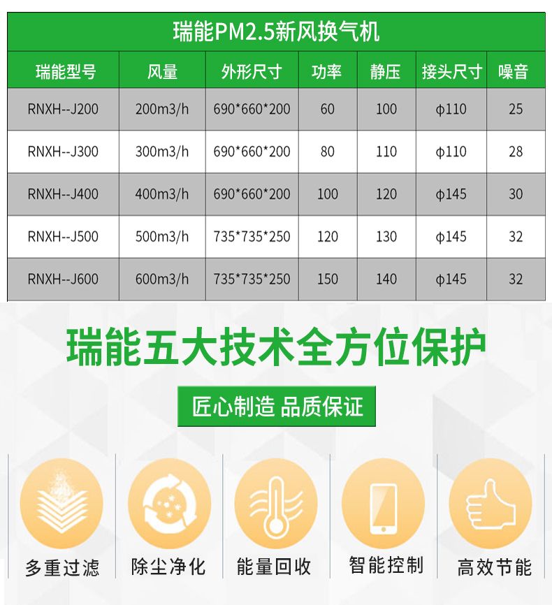 二、动力系统。通常是采用高效低噪动力风机,强制性的实现空气对流交换,室内外空气互换。