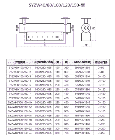 用户可选择从一支灯管到多只灯管的配置组合,详见下表规格一览,处理水量据灯管数量和单只灯管功率决定。