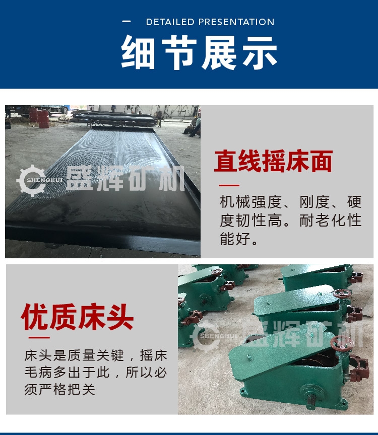 作用:6-S型摇床是一种物理选矿设备,它主要用于选别金、银、铅锌、钽铌、锡等稀有金属和贵重金属矿石。