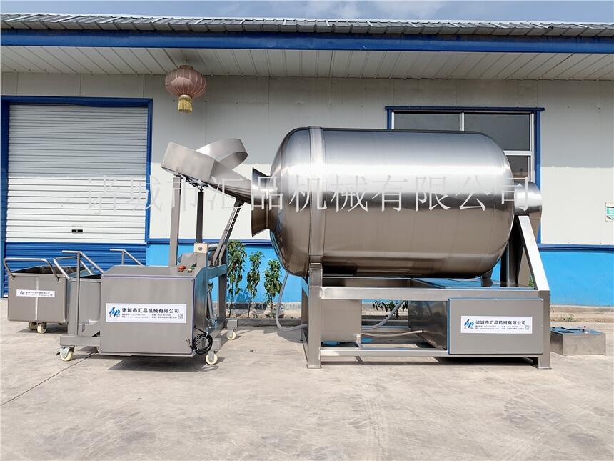 1.滚揉机加料:开启真空泵,在达到一定的负压的时候,将吸料管连接上吸料。