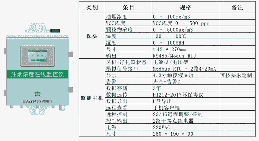 ACY100油烟监测测仪,型号ACY100-Z4H1-4G,4寸/7寸显示