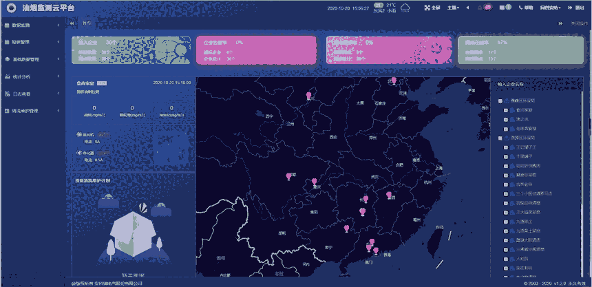 显示告警企业数量,告警率,包括超标、在线率统计。