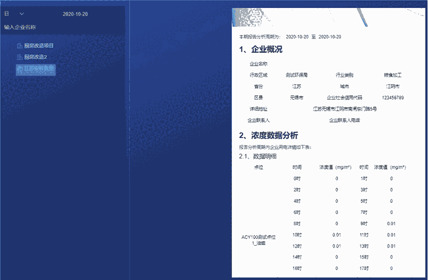实时监测数据包括油烟净化器和风机的运行电流,油烟浓度、颗粒物浓度和NMHC浓度等信息。