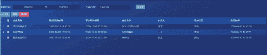 设置企业检测仪定期的清洗、更换计划,包括维护监测点位的安装时间,上一次清洗时间,以及下一次的维护周期,对应的负责人等信息