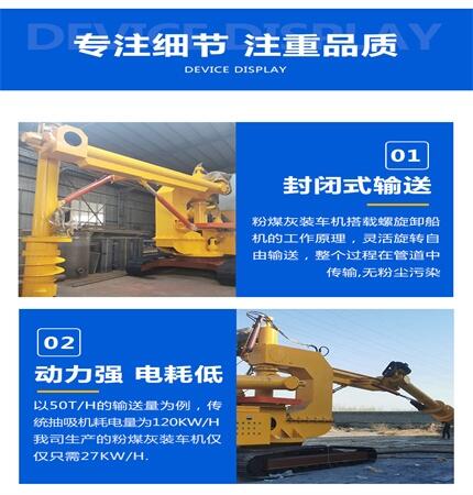 粉煤灰装车机搭载螺旋卸船机的工作塬理,灵活旋转自由输送,整个过程在管道中传输,无粉尘污染。