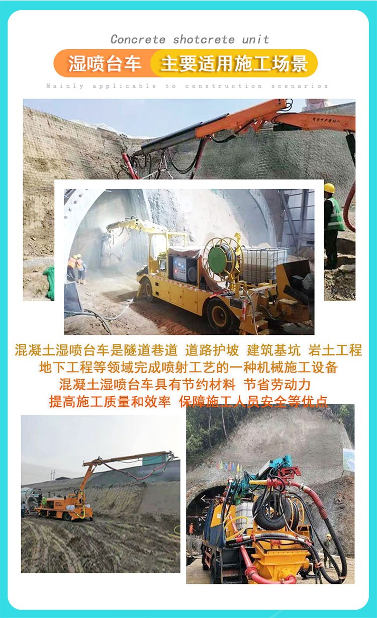 随着湿喷台车的出现,不仅解决了小型湿喷机不能长大混凝土的不足,还了施工人员的工作,效率还了混凝土的消耗。 3016湿喷机械手 湿喷台车 液压湿喷机械手设备价格。