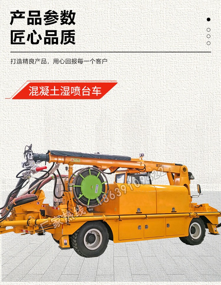 产品概述 采用稀薄流风送型湿喷机,对混凝土拌合物适应性好,胶凝材料和外加剂用量低,独特臂架结构,采用具有回转支柱的二级臂架结构,适宜于台阶法施工,可三台阶环形开挖留核心土工法,作业无死角。 3016湿喷台车 车载式机械手设备价格。