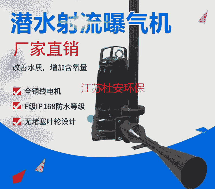曝气设计专用水泵,进气导管、喷嘴座、混气室、扩散管所组成,水流经连接于泵出口之喷嘴座高速射入混气室,空气由进气导管引导至混气室与水流结合,经扩散管排出。也称射流曝气机。