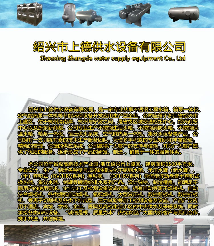 绍兴市上德供水设备有限公司 智能客服智能客服在线解答,若涉及资金打款事宜,务必与厂家进行电话确认。