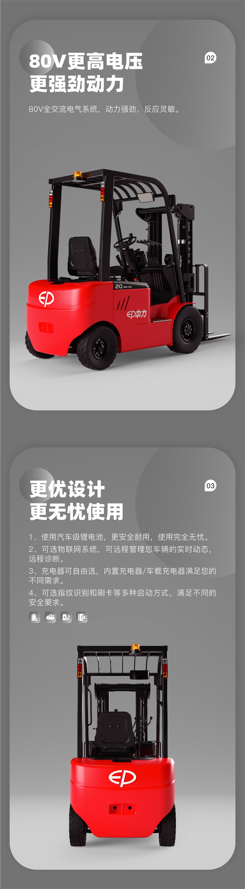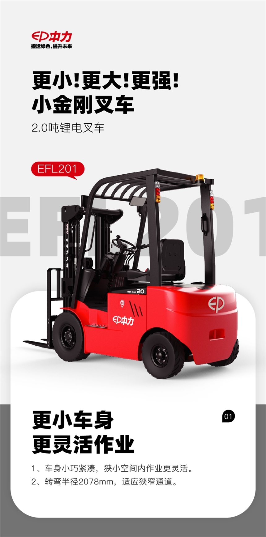 山东中力2吨全电动叉车锂电池四轮货物装卸铲车升降叉车