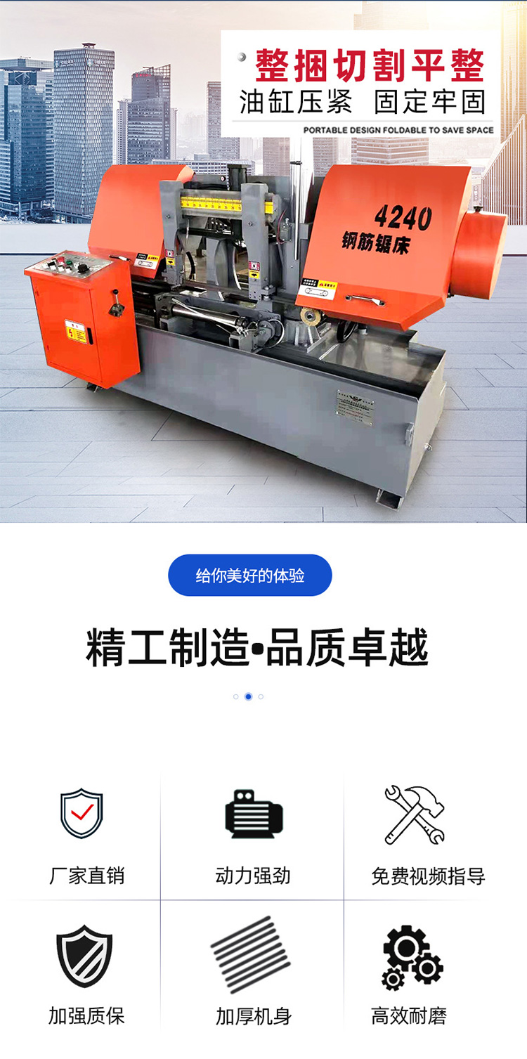 金属切割带锯床 电动液压钢筋专用带锯床 圆钢锯床切割机 带锯床运行时产生的不正常震动,齿轮间隙太大,带锯床电机功率太小,夹具使用和冷却液的配比不恰当会对锯片造成 很大伤害。锯机转速太高,进刀速度太慢对锯条会产生过热。锯机的和锯切的应用参数直接响锯切,锯切的效 率和锯片的使用寿命。根据你的带锯床锯切需求,为你选择蕞的锯切,我们不单提供忧质锯片,更提供zhuan 业的锯切方案。