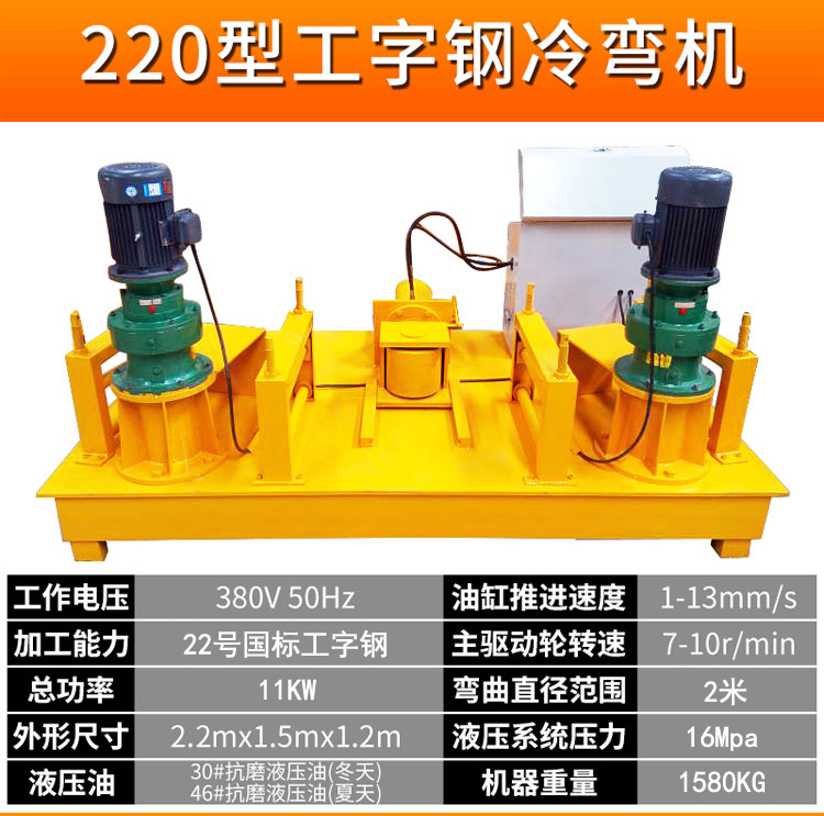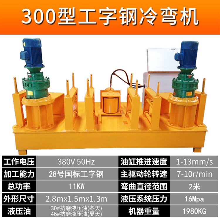 工字钢冷弯机厂家供应250型液压工字钢顶弯机 引水隧洞冷弯机 工字钢冷弯机弯弧机介绍 支护工字钢拱架加工工字钢冷弯机被中铁工程局产品,WGJ系列冷弯机是我厂自主研制的一种多功能型钢冷弯设备,国内。工字钢冷弯机设备由主电机、减速器、滚轮、油泵电机、齿轮油泵、溢流阀、电磁换向阀、作业油缸、顶轮及油箱等部件组成。构成简单,使用方便。问题很少,是我公司一款成熟技术产品。 主要用于工字钢、H型钢等型钢的拱形卷圆、变径、定角弯曲。采用数显编码器编程,使液压操纵定位准确,所弯型钢一次自动成型,效率高、操作方便。 工字钢冷弯机厂家供应250型液压工字钢顶弯机 引水隧洞冷弯机。