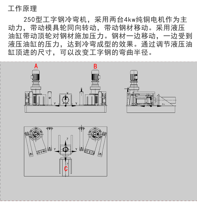 工字钢冷弯机厂家供应WGJ-250型工字钢弯弧机 型钢冷弯设备 钢拱架拱背的缝隙过大 在进行钢拱架缔造和运用的中钢拱架与的联接部分会呈现较大的缝隙,因此空间再生的中并不能够与进行紧密的结合,在发作崩塌事端的中跟我讲不能够发挥本身的支护作用,晦气于全体缔造的跋涉影响到全体缔造的安全性。
