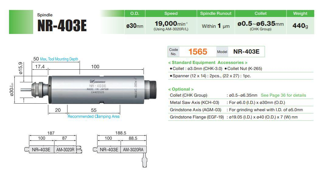 NAKANISHI 气动主轴马达 AM-2526R 分体式气主轴 钻孔机床主轴