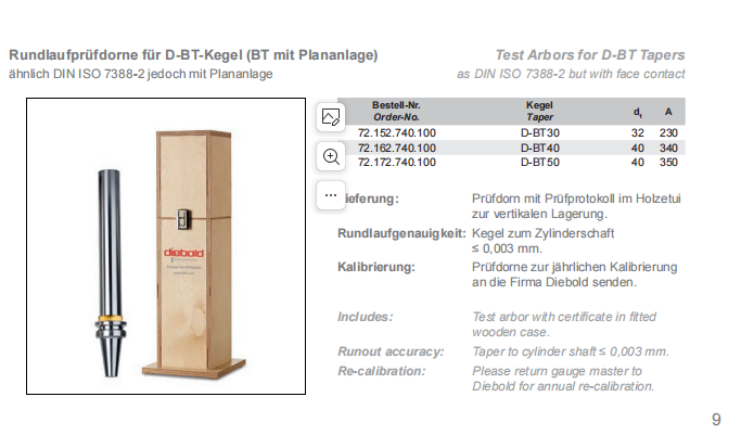 德国戴博DIEBOLD主轴检测棒 BT30五轴机床 专用球头跳动检测棒