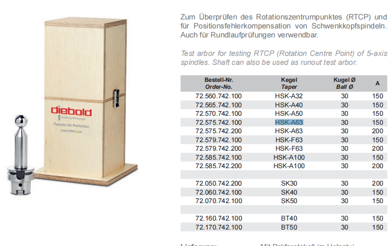 德国Diebold戴博 HSK-A40球头检棒 五轴机床检测棒 刀尖追随