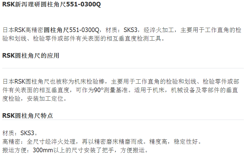 RSK新泻理研圆柱直角尺 551-0600Q 圆柱直角规 高精度角度规