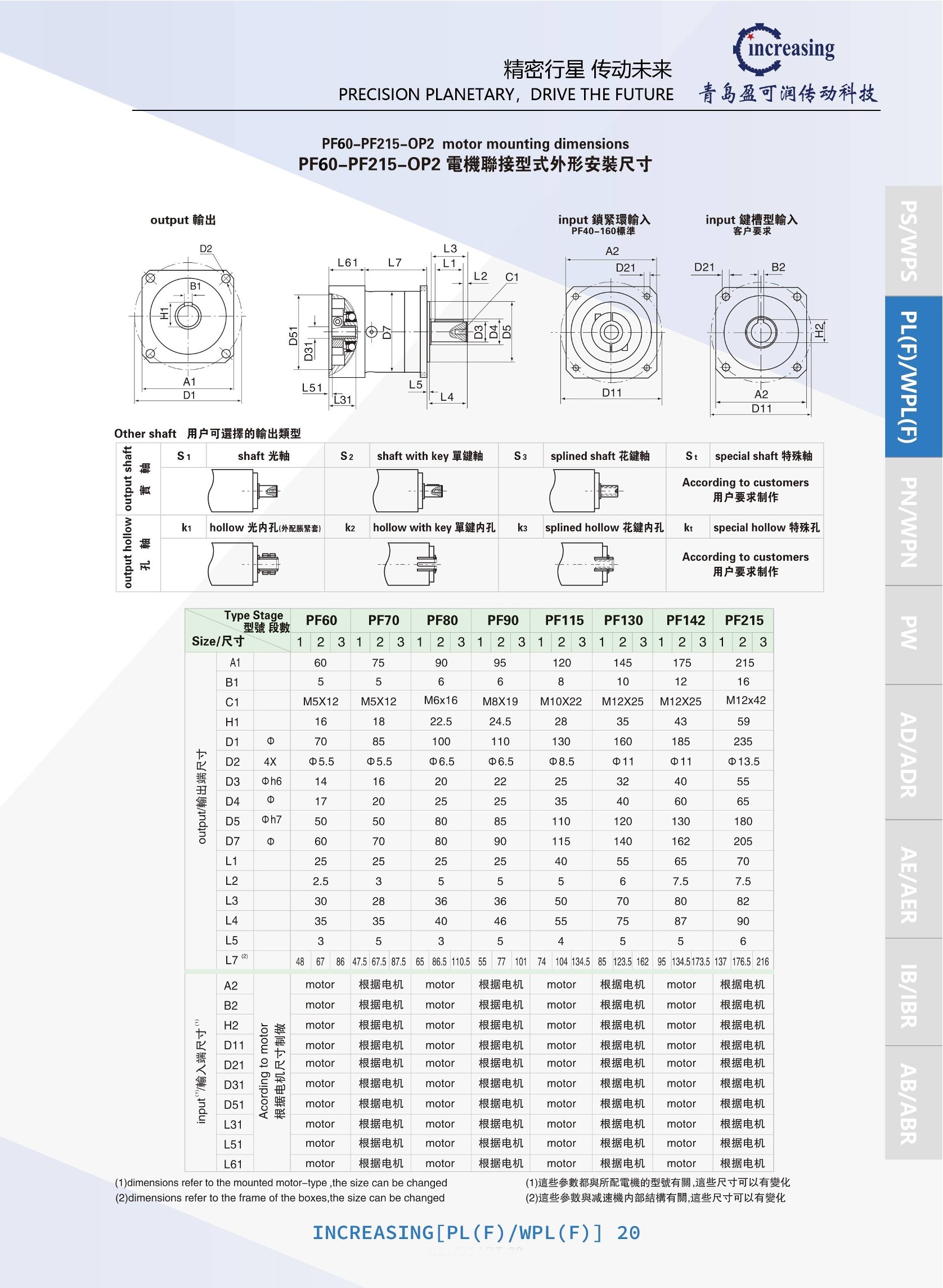减速机构采用直齿轮设计,其齿形啮合率高于一般齿轮,具有运转平顺、低噪音、高输出扭矩和低背隙的特性 | 输入端与马达的链接采用筒夹式的锁紧机构并经动平衡分析,以确保在高输入转速下结合接口的同心度和零背隙的动力传递 | 独特的电机连接板和轴榇的模块化设计,适用于任何厂牌和型式的伺服马达 |
