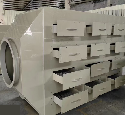 抽屉式活性炭吸附箱是一种常见的空气净化器设备,它通过活性炭吸附技术帮助去除室内空气中的污染物和异味。它通常由一个箱体和可拉出的抽屉式设计构成,使得活性炭的更换和维护更加方便。 抽屉式活性炭吸附箱内部填充有高品质的活性炭,这是一种多孔性材料,具有特殊的吸附性能。它能够吸附和捕获大部分的气体分子和化学物质,同时也能够去除异味,让室内空气更加清新。 活性炭的吸附过程是一个物理吸附过程,其原理是利用活性炭表面的微孔和大孔结构,将污染物质分子吸附在其中,从而达到净化空气的效果。活性炭具有非常大的内表面积,通常为几百到几千平方米每克,这使得它能够吸附更多的污染物质,使空气更加清洁。 抽屉式活性炭吸附箱,根据自己的空变抽屉式活性炭吸附箱在使用中非常方便。用户可以根据需求选择合适气净化需求选择适当的尺寸和容量。当活性炭吸附饱和或使用一段时间后,用户只需要打开抽屉,取出旧的活性炭,并更换为新的活性炭即可。这种设计使得维护和更换活性炭得非常简单,同时也保证了设备的稳定性和效果的持久性。