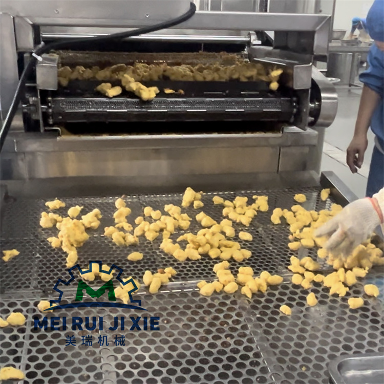 可以衔接上粉机、上屑机、成型机,油炸机等设备从而实现连续性生产,;