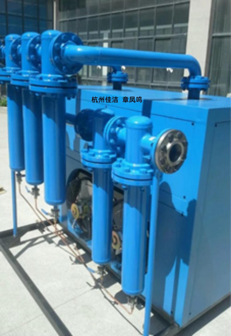 工作原理:压缩空气中水蒸气的量是由压缩空气的温度决定的:在保持压缩空气压力基本不变的情况下,降低压缩空气的温度可减少压缩空气中的水蒸气含量,而多余的水蒸气会凝结成液体。冷冻式干燥机就是根据水的饱和蒸汽压力和温度之间的对应关系,l用制冷装置使压缩空气冷却到一定的l点温度,析出所含的水份,通过汽水分离器与电动排水器将水排出,从而使压缩空气得到干燥。