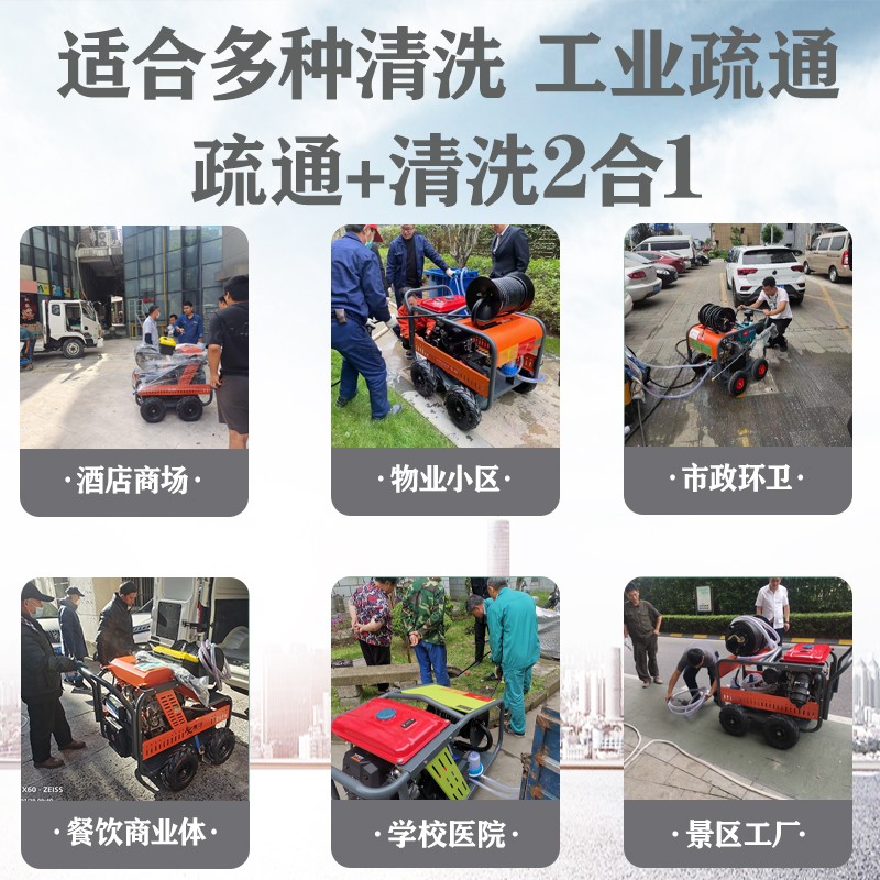建筑外墙移动高压清洗机大功率管道疏通清洗机柴油高压管道疏通机下水道大流量管道疏通机