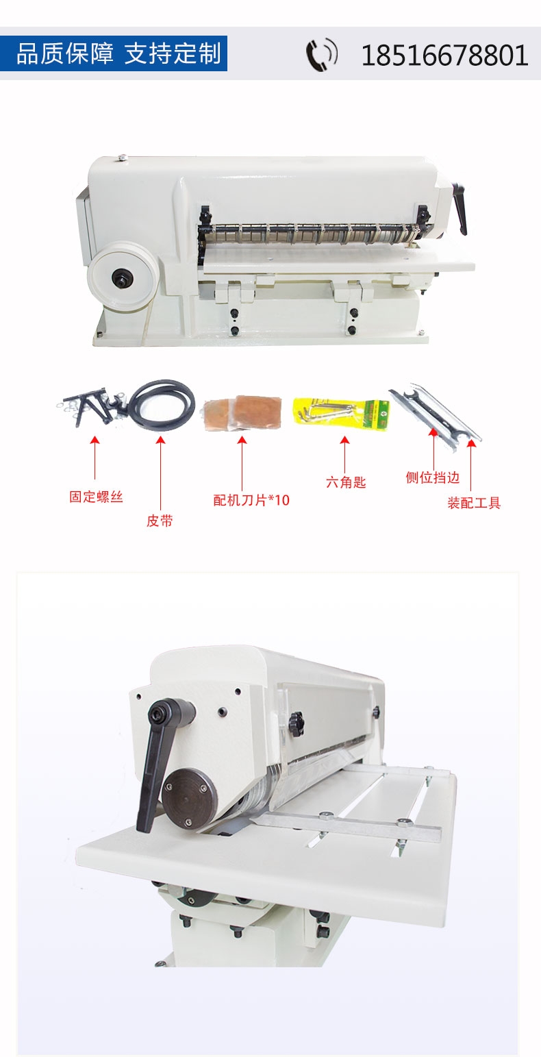 本机适用于条形布料裁剪,通过精微的调节旋钮。可以自由调整刀间宽度,加工所需宽度的条形布料。