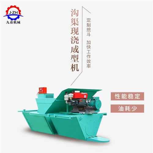 混凝土U型槽现浇成型机,也叫沟渠一体机。 根据行走方式一般分为两种,一种是液压自行走式水渠成型机,一种是钢丝绳牵引式渠道成型机,两种行走工作方式可满足不同的工程需求。液压自行式水渠成型机,液压自走操作简单,只需向进料口输送足量的混凝土,机械即可自主向前行走工作,省时省力省人工。液压自走式主要由:主机模具,挖斗,料斗,液压系统,电控系统,发电机组,高频率振动电机和切缝刀组成!可修建t型渠,u型渠,矩形渠等多种渠型。