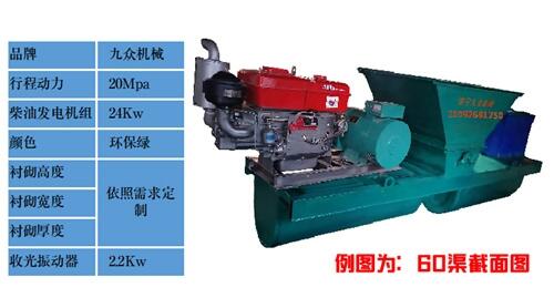 钢丝绳牵引式渠道成型机,需要在施工前在挖好的渠道初形里提前打地锚,用作固定点,一般在50米的距离位置上,修筑一部分距离后需要重新在前方打地锚,相比液压自走式水渠成型机多一道工序,牵引式主要由:主机模具,挖斗,料斗,电控系统,发电机组,高频率振动电机,卷扬机组,切缝刀,地锚和滑轮组组成!因行走方式和工作原理的不同,牵引式水渠成型机不可修筑矩型水渠和u型水渠。