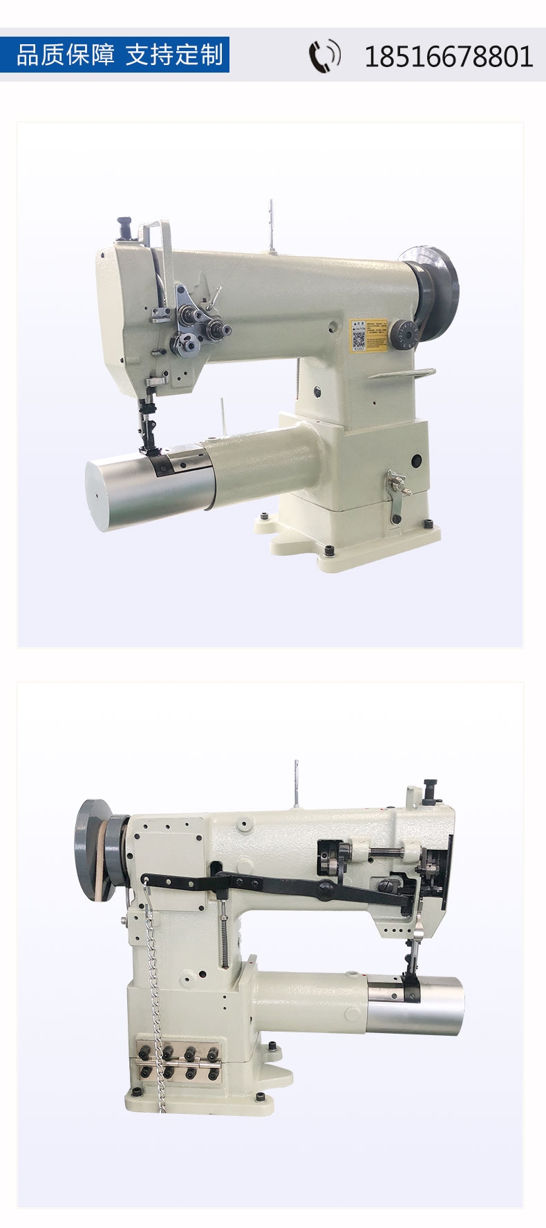 传统上头缝纫机2603的完美升级替代产品,旋梭自带保护装置,卡线时可以自动分离,避免旋梭跑位。独特的针位设计,可形成合适的针距;专为缝厚料设计的零部件,吃厚能力更强;改进的旋梭,在使用玻纤线和四氟线缝制时调节更简单。筒式综合送料厚料双针缝纫机,除具有单针的所有功能外,更可以每次缝纫双线,线迹均匀美观,缝纫速度更快。?