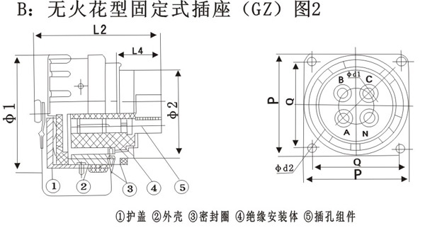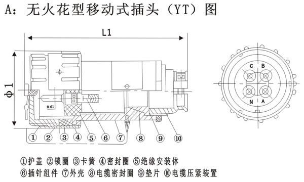 YT/GZ/YZ无火花防爆插头插座连接器,分插头插座2部分。有固定式和移动式。分三相四极/四相五极。电流15-300A。