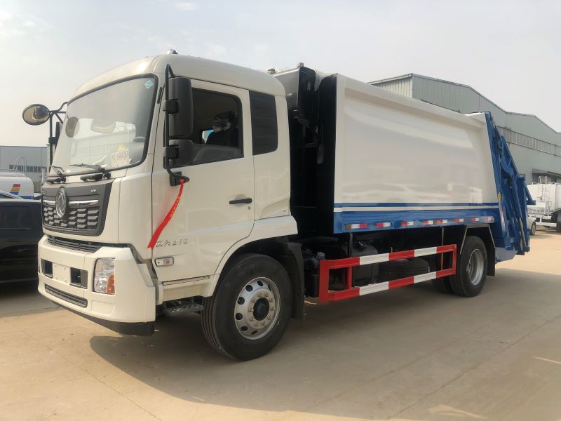 该车型主要用于各类垃圾清理及运输,主要装置为压缩厢体及填充器.选装后部垃圾盖及后部翻转机构结构, 选装后部垃圾盖及后部翻转机构结构时引起整备质量参数的变化在3%范围内.后部翻转机构为无翻转式,轴距/后伸/外形长对应关系为:4500(mm)/1270(mm)/8400(mm),4700(mm)/1270(mm)/8600(mm).后部翻转机构为摆臂式,轴距/后伸/外形长对应关系为:4500(mm)/1370(mm)/8500(mm),4700(mm)/1370(mm)/8700(mm).后部翻转机构为挂筒式,轴距/后伸/外形长对应关系为:4500(mm)/1620(mm)/8750(mm),4700(mm)/1620(mm)/8950(mm).后部翻转机构为带斗式,轴距/后伸/外形长对应关系为:4500(mm)/1670(mm)/8800(mm),4700(mm)/1670(mm)/9000(mm).侧防护材料为Q235,连接方式为连接支架固焊在副车架大梁上.因后部结构需要无法安装,后防护专用装置代替,离地高为430(mm).驾驶室前脸扰流罩为选装件.选装前雾灯.驾驶室顶部装饰灯为选装件.选装卧铺侧窗装饰板,选装导流罩.选装驾驶室.选装前面罩.装有具有卫星定位的行车记录仪.ABS型号:3631010-C2000,4460046440;生产厂家:东科克诺尔商用车制动系统(十堰)有限公司,威伯科汽车控制系统(中国)有限公司. 采用ISD270 50, ISD210 50,ISD180 50,EQH180-53,ISB180 50,ISB210 50发动机,对应油耗值(L/100km)分别为:29.0, 29.0,29.0,29.2,29.1,29.1. 仅采用4500(mm),4700(mm)轴距底盘.