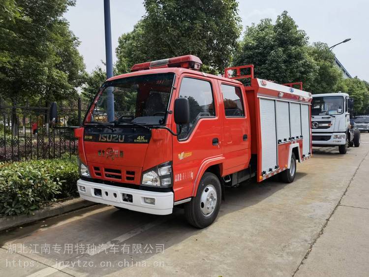 江特牌JDF5070GXFSG20/Q6型水罐消防车,采用庆铃QL1070BUKWY底盘改装而成。整车由消防员乘员室和车身两大部分组成,乘员室为原装双排,可乘坐2 3人,该车为内仓罐结构,车身前部为水罐 器材箱,后部为泵房。载液罐体为碳钢,与底盘采用弹性连接,载水1850kg,装备了上海雄真消防设备有限公司生产CB10/30-XZ型消防泵,额定流量30L/S,车顶安装成都威斯特消防机械有限公司生产的PS30W型车用消防炮。该车辆结构紧凑,配置完备,机动性强,能够及时应对企业,社区或 消防单位的火情,可以形成小型战斗力进行初期火灾的扑救和人员疏散撤离。