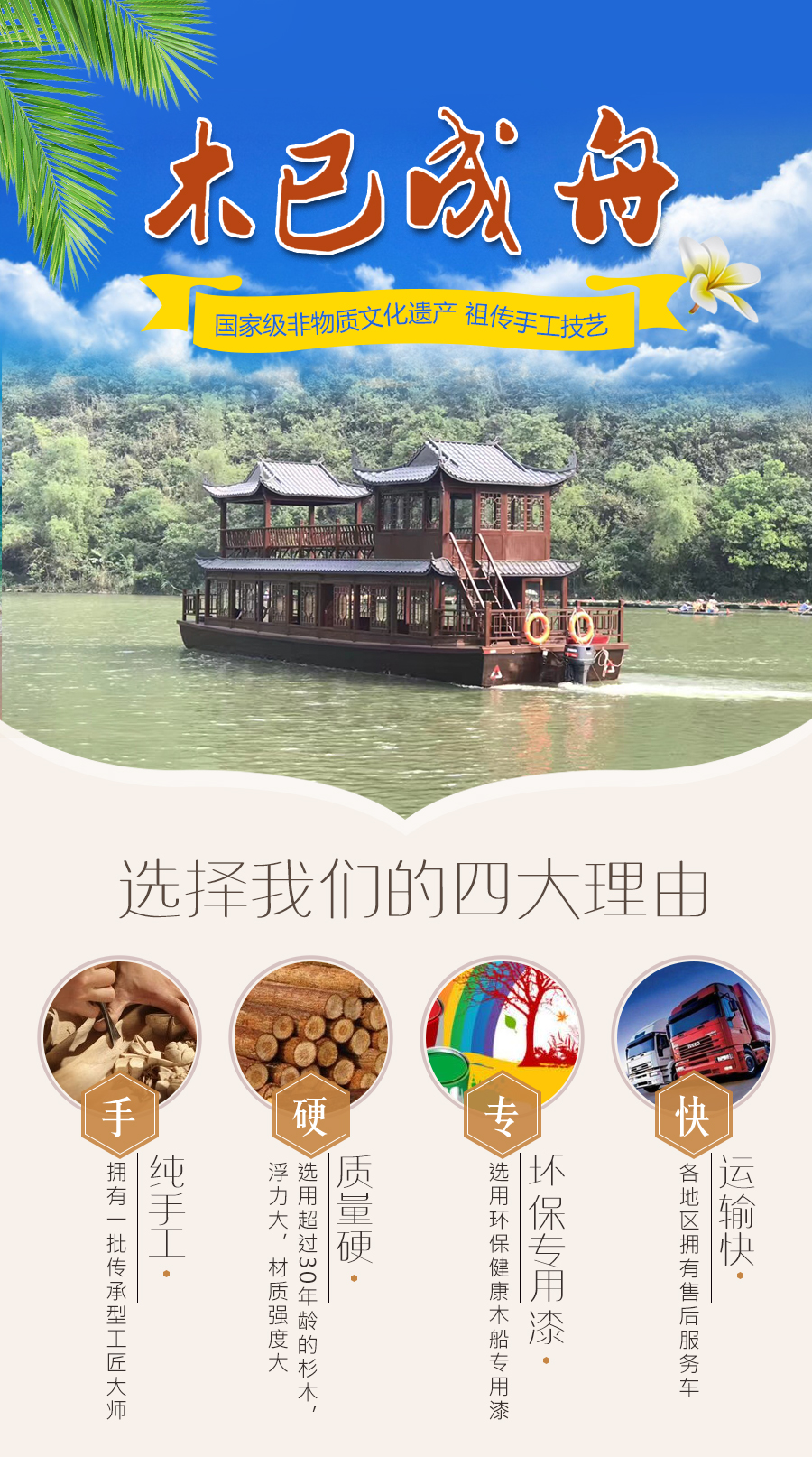 周氏木船专业定制木质画舫船钢制双层景区水上餐饮观光电动游船