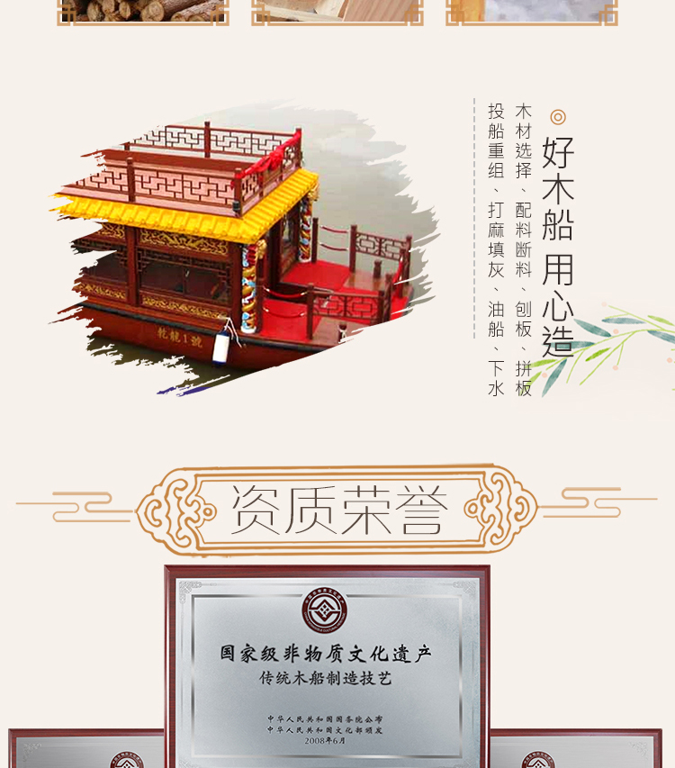 周氏仿古电动游船双层画舫船木质旅游观光船大型木船厂家可定制