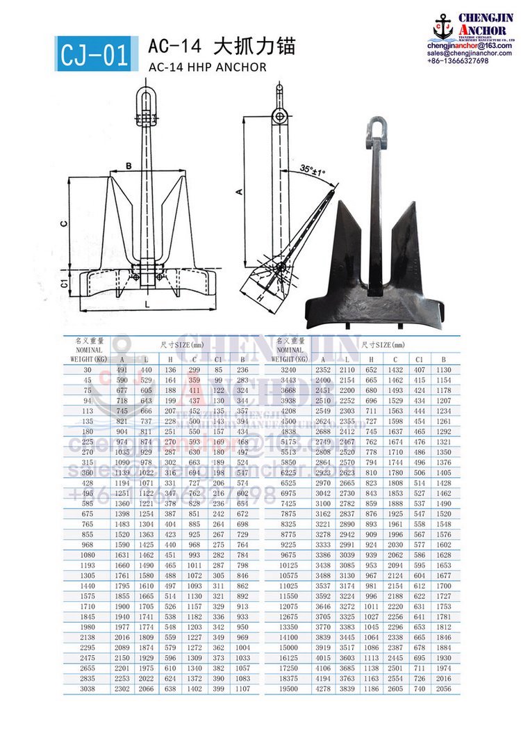 【滕州成金】AC-14大抓力锚 15000KG, 有LR,NK,CCS,ABS等船检
