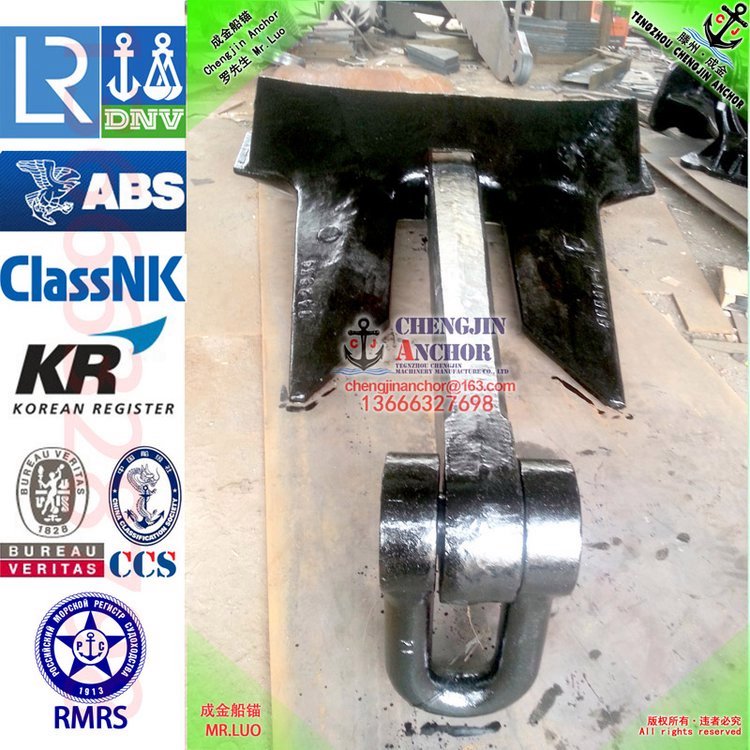 滕州成金船锚 生产斯贝克锚,霍尔锚,有杆锚,日本无杆锚,CJD-14 德尔塔大抓力锚(三角锚),CJT-20 (TW波尔)大抓力锚,CJ-17大抓力锚(MK5海工锚),丹福尔锚,我公司可提供ABS, BV, CCS, DNV, NK, GL, LR, RMRS, KR, 等普通锚船检证及大爪力锚船检证,欢迎订购!!