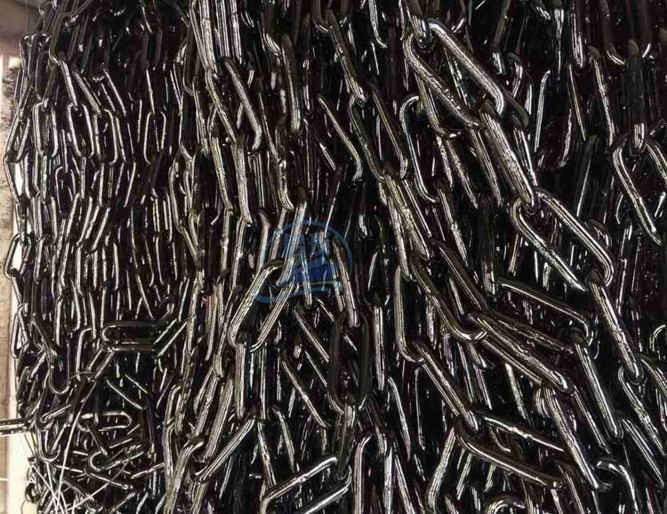 锚链可分为无挡链和有档链两种。同样尺寸的有档链环比无档链环的抗拉强度大20,同强度的有档链环比无档链环轻5,伸长变形小,且锚链堆叠时不易发生绞扭。故船上一般采用有档链,无挡链一般用于小锚上。