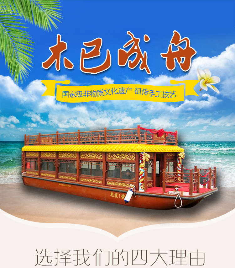 周氏仿古电动游船双层画舫船木质旅游观光船大型木船厂家可定制