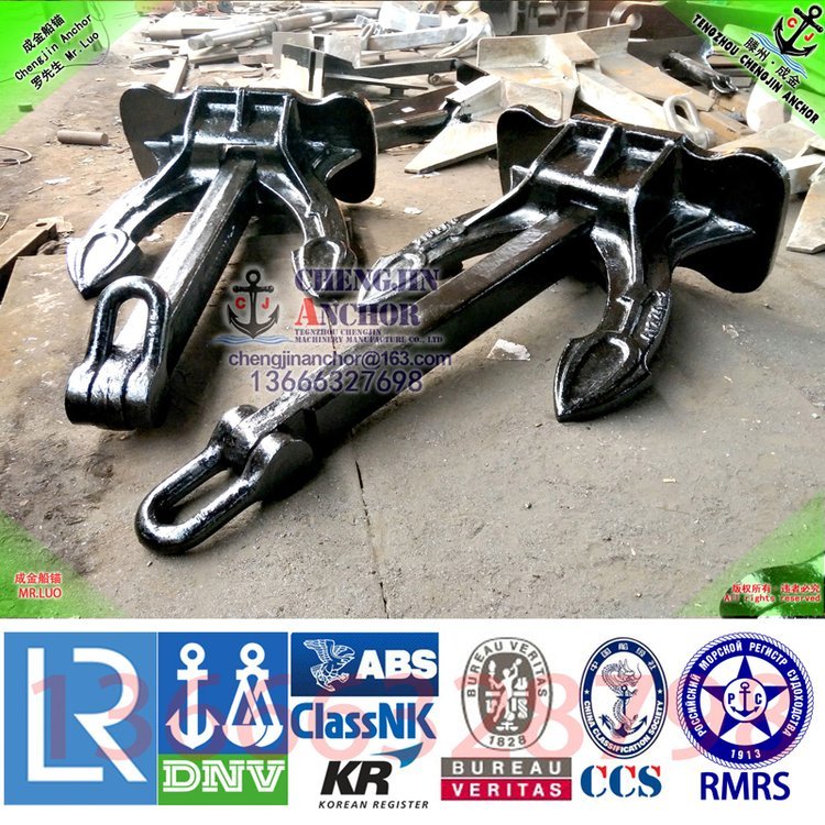滕州成金船锚 生产斯贝克锚,霍尔锚,海-军锚,日本无杆锚,CJD-14 德尔塔大抓力锚(三角锚),CJT-20 (TW波尔)大抓力锚,CJ-17大抓力锚(MK5海工锚),丹福尔锚,我公司可提供ABS, BV, CCS, DNV, NK, GL, LR, RMRS, KR, 等普通锚船检证及大爪力锚船检证,欢迎订购!!