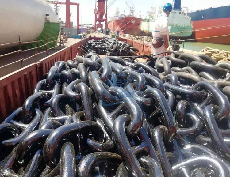 公司生产的有档船用锚链:材质为CM490、CM690等,表面处理方式主要有:黑漆、电镀锌、热镀锌等,可以提供CCS/BV/NK/LR/ABS/DNV等正本船检证书,1-2天,可以供货到山东、青岛、大连、天津、秦皇岛、江苏等全国各大沿海城市。
