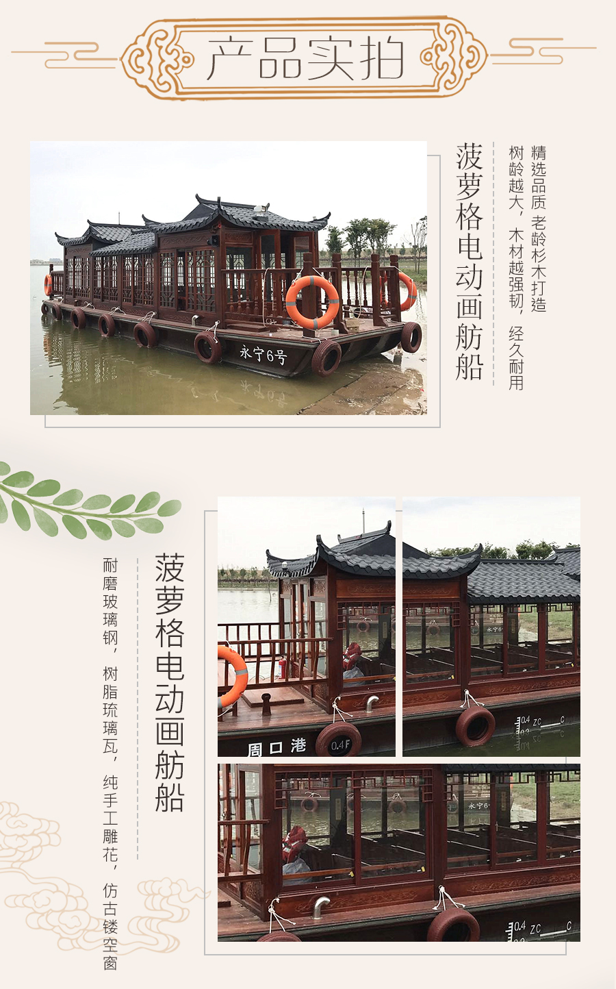 周氏24人旅游景区码头观光单层画舫船10米仿古电动游船支持定制