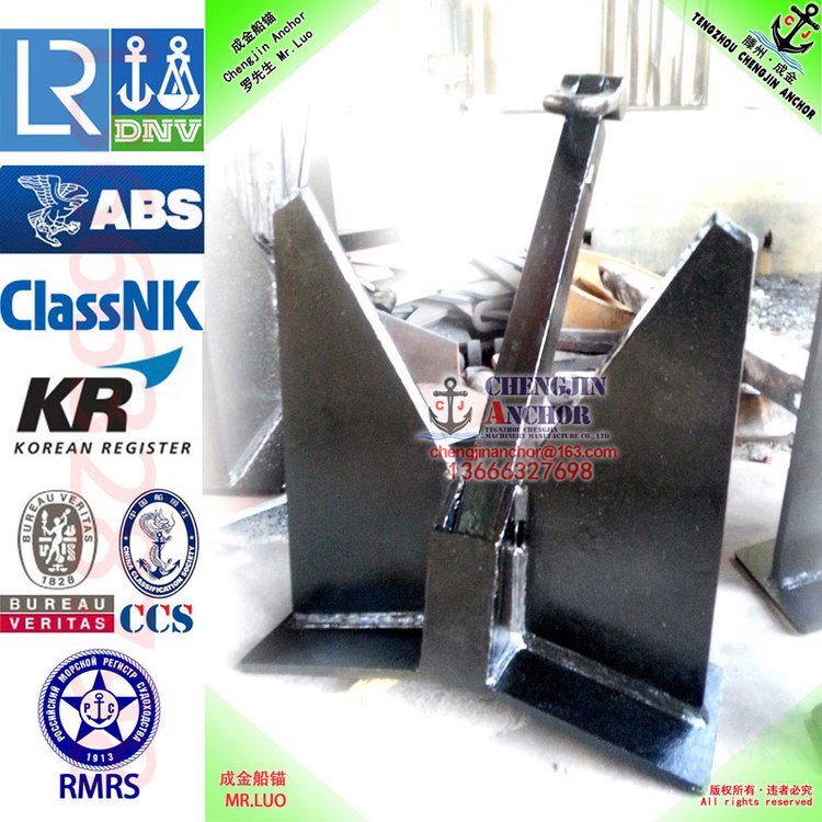 滕州成金船锚 生产斯贝克锚,霍尔锚,海-军锚,日本无杆锚,CJD-14 德尔塔大抓力锚(三角锚),CJT-20 (TW波尔)大抓力锚,CJ-17大抓力锚(MK5海工锚),丹福尔锚,我公司可提供ABS, BV, CCS, DNV, NK, GL, LR, RMRS, KR, 等普通锚船检证及大爪力锚船检证,欢迎订购!!