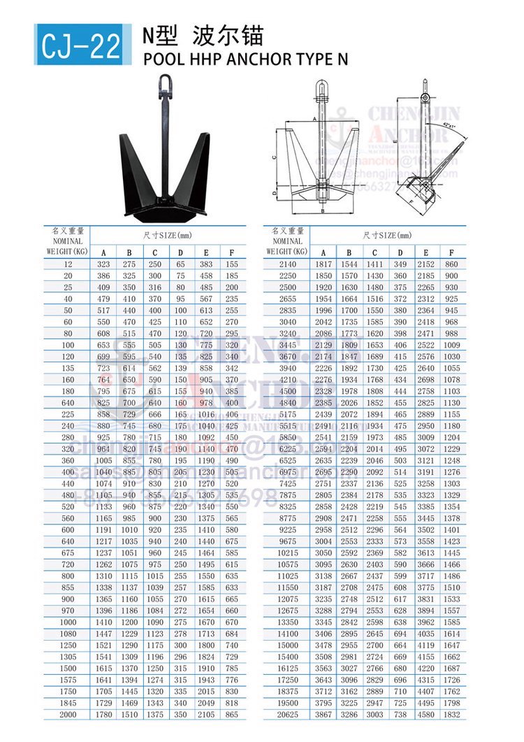 成金N型波尔锚 具有良好的抓持力,质量可靠,爪力优越,性能稳定,是各类船舶的优选对象。