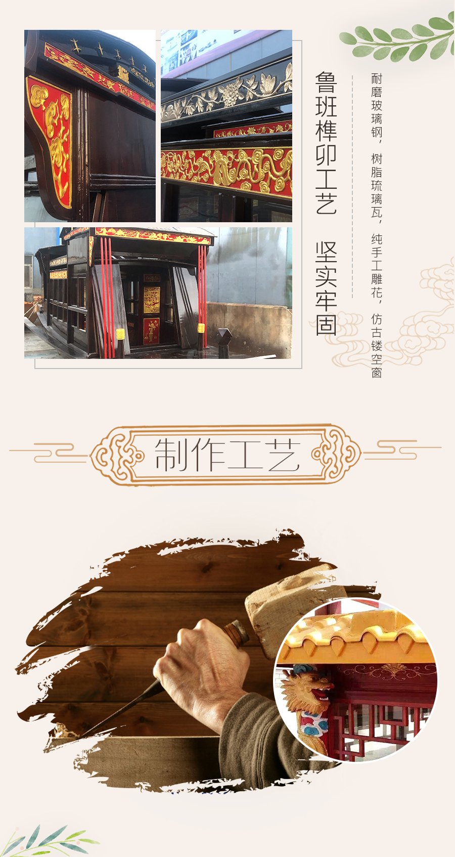 定制仿古木船复制古船16米党建复古红船大型水上餐饮装饰景观船